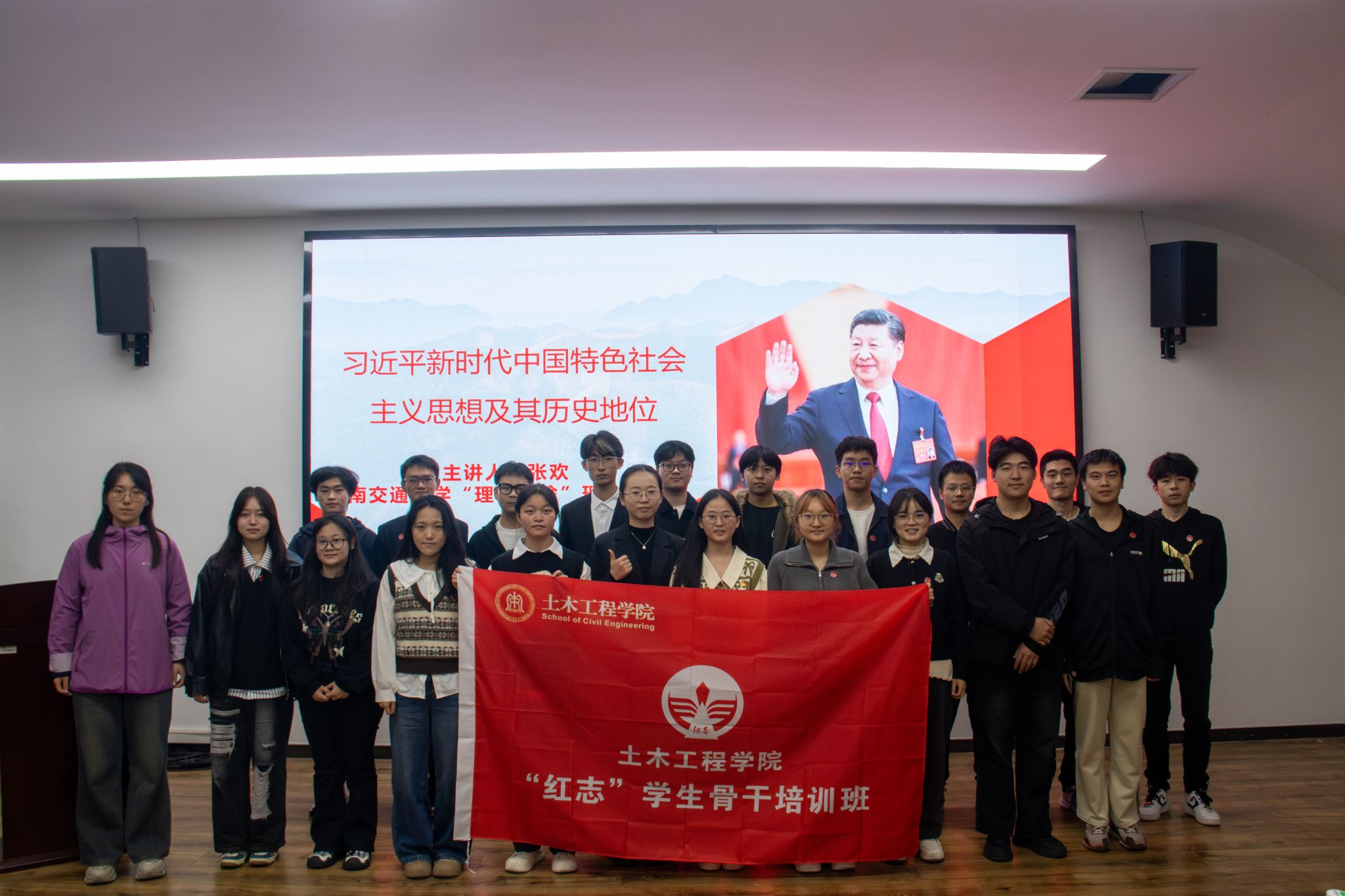 为深入学习贯彻习近平新时代中国特色社会主义思想,贯彻落实党的二十大精神,引领青年学子坚定理想信念,传承红色基因,2025年10月30日晚,新葡的京集团35222vip“红志”员工骨干培训班(第六期)有幸邀请到新葡的京集团35222vip“理响红途”理论宣讲团成员张欢老师,在X4407教室开展“习近平新时代中国特色社会主义思想及其历史地位”的专题学习。