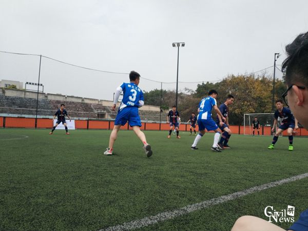 另外一场小组赛在岩土队和隧道队间展开,一声哨响,隧道队开局便初露锋芒。进攻十分猛烈,比赛刚进行至第10分钟,岩土队一名队员在一次拼抢中脚踝受伤,被换下场。但岩土队一直顽强拼搏,4号队员鱼跃冲顶,球进了!岩土队1:0领先,上半场结束。下半场一开始,隧道队开始绝地反击,岩土队队员全线压上,却让后防岌岌可危,隧道队90号队员胡萧越在右翼一脚似传似射的打门成功破网,球进了,比分改写为1:1平。随后双方战局焦灼,互相死守,1:1的比分也一直保持到下半场结束。