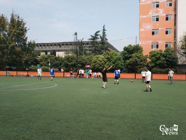 另一场小组赛在研二的综合队和结构队间展开,随着裁判一声哨响,上半场双方展开了精彩的对攻大战。结构队先下一城后,综合队随即扳平比分。此后,双方进攻的势头毫无减退,结构队以精妙的配合又连下两城,中场结束时,综合队也找到机会扳回一分。下半场开始后,综合队先发制人,顽强地将比分扳成3:3平。随即结构队开始踢得更有战术性,不紧不慢地消耗综合队的体力,果真战术收到了奇效,结构队依靠步步逼近的传球,打穿了综合队的防线,5分钟之内将两球收入囊中并保持到终场,综合队最终以3:5的比分败给结构队。