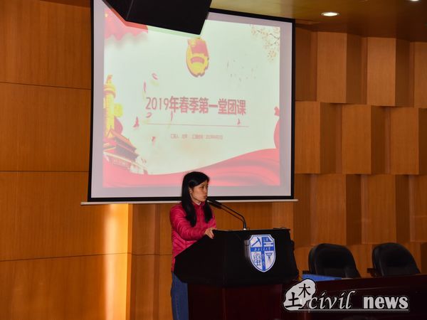 团课以全体起立,奏唱团歌的形式拉开序幕。团歌是每次团课必不可少的,也代表着每一位团员心中的光荣,青春洋溢的旋律扬起团员们心中的激情,恰到好处的将课堂的气氛带动。第二项活动更是通过同学深情的语调将团组织给团员的一封信朗读了出来,使共青团的这份满满的爱传递了出来。团组织将对团员们的期待,对未来的期望,对青春的畅想都寄语于这信中,继往开来的豪情拨动着每一位团干的心。