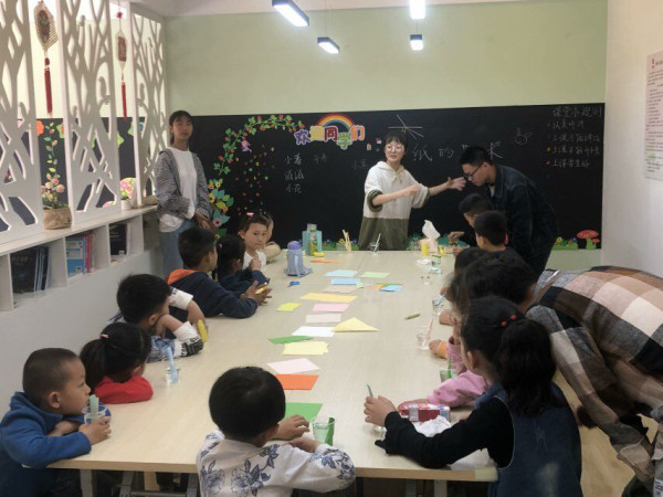 今天正式支教时,志愿者们准备的内容获得了小朋友们积极的应答,在提问时,小朋友们都很积极地回答老师们提出的问题,气氛十分活跃。