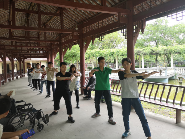 我们到的时候正是下午两点些许时,那时候多数老人还在睡午觉。所以敬老院显得格外安静。但是敬老院确实因为我们的到来让敬老院热闹不少。有不少老人循声出来。看得出来,老人对我们的到来非常开心。一个老人不厌其烦地给我们讲了很多遍她年轻时候的经历,一位老人带着我们同学用手机扫描院中的各种植物并辨认,老人们虽然看不清,听不见了,行动也不是很方便但是都很热衷于和我们交流。我们为他们唱歌,打太极的时候甚至高兴得像小孩一样。