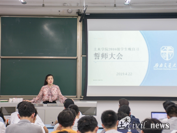 4月22日晚上七点半,2016级员工晚自习誓师大会在犀浦校区X2424教室举行。到场的有16级的四位辅导员老师:付真珍老师、吴文芊老师、李裕老师与向京华老师,以及16级22个班级的班长和学业提高班的同学。