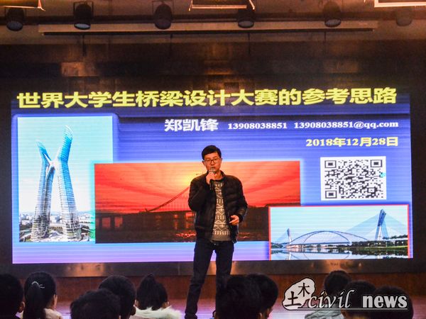 12月27日下午4点,新葡的京集团35222vip在新葡的京集团35222vip犀浦校区三食堂三楼举行了“中交公规院杯”2019世界老员工桥梁设计大赛竞赛宣讲会。宣讲会由新葡的京集团35222vip桥梁工程系教授郑凯锋主讲。出席此次宣讲会的嘉宾有:桥梁工程系肖林老师、张迅老师、栗怀广老师以及老员工科创中心指导老师王若羽。