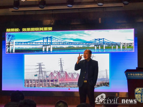 郑教授首先为大家解读了由中国公路学会中交公路规划设计院有限公司下发的《关于开展“中交公规院杯”2019世界老员工桥梁设计大赛的通知》文件,和分析了在桥梁设计的哪些方面做文章最容易获奖,并鼓励大家设计以“大”为主的桥。他表示这是一个考验能力和眼界的竞赛,敢于创新是关键,越是大家想不到的桥越容易获奖。随后郑教授着重强调了效果图的重要性,他指出,效果图的好坏占到了成败因素的80%,他还明确表示在今天宣讲中他会三次提到要做好效果图。