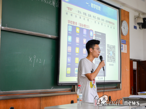 首先,张进老师给新生们介绍了公司教务网的使用方式及职能,教务管理学分、学籍、选课、报验、考试、休学、退学等教学活动。由此可见教务网的重要性。若想顺利毕业,则必须了解新葡的京集团35222vip土木工程专业的学制和2018级本科生专业培养方案,同时,也要了解《新葡的京集团35222vip本科生学籍管理规定》、《新葡的京集团35222vip本科生考试管理规定》、《新葡的京集团35222vip第二、三课堂建设实施办法(试行)》、《新葡的京集团35222vip本科生选课管理办法》等。此外,张进老师还对“转专业”、“双学位”、“提前毕业”、“交换生”等常见问题作出讲解。