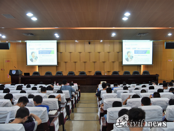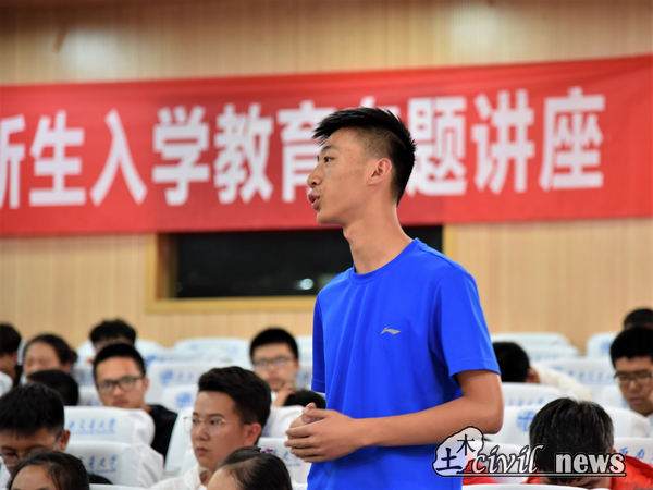 无论从全国的建筑业还是四川的建筑业发展趋势看,建筑行业发展态势前景广阔,土木人正处于大有可为的时代,谭教授由此激励同学们奋发向上,并祝贺在座的各位同学选择了一个前程似锦,后劲十足的行业。为了帮助同学们明确目标,他还对同学们提出了6点建议:(1)思想上转变态度(2)学习上要筑牢基础(3)行动上要定好目标(4)行为上要符合建设人的人格(5)旅程上要从心开始(即五心:欢心、收心、决心、恒心、用心)(6)坚守四个要(即:要讲“规矩”、要谋“全面”、要善“安排”、要重“落实”)。新生们不久即将踏入建筑行业,需要懂得人格如金,一个良好的人品,更是做人的根本。