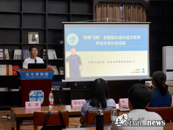 最后一位分享的嘉宾是来自力学与工程公司2014级的同学许磊。他认为大学的时光是用来学习如何把人做好、把学问做大的。他鼓励同学们参加学科竞赛,因为他认为竞赛是科研的预演,但不应该盲目地参赛,应该选择适合自己的项目,同时平衡好学业与竞赛的关系。