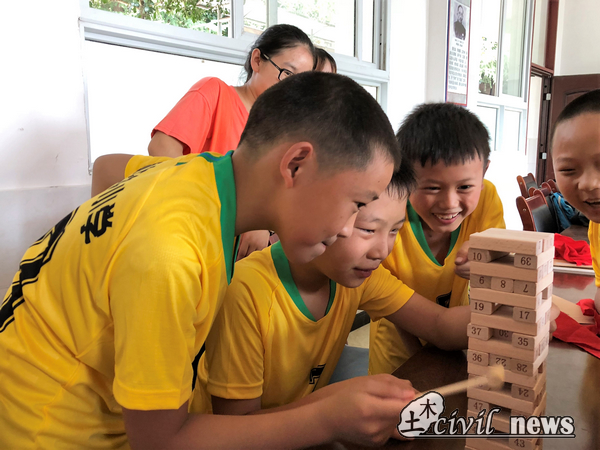 下午的志愿教学移步到了顺龙小学的教室中进行,同学们和志愿者们分别进行了自我介绍,小朋友们还展示了自己许多精彩的才艺。在志愿者老师的带领下,小朋友们进行了特别的积木游戏,通过取出积木塔中的积木块,思考如何在去掉部分支撑的情况下依然保持结构的稳定,让同学们直观地感受到立体几何的空间关系。