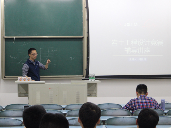 4月11日晚19:30,“交大土木设计有限公司杯”2018土木科技月岩土工程组“土木讲坛”活动在X2226如期举行,本次讲坛活动旨在为岩土比赛的参赛者们答疑解惑、更加深入了解赛题。