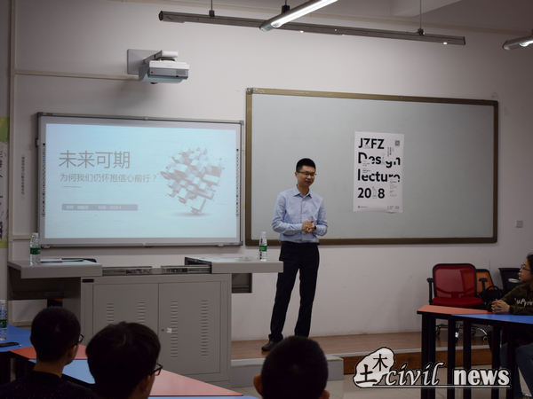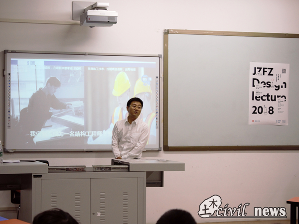 活动一开始,在同学们热烈的掌声下迎来胡总来了发言。作为一名有着17年工作经验的结构工作者,胡总分别从“起风”、“水能载舟”两个方面向同学们分享了他的工作经验,以及从他的角度对如今建筑结构这整个行业的认识。虽然胡总的阐述角度十分专业,但他用通俗易懂的讲解,牢牢地抓住了同学们的注意力。