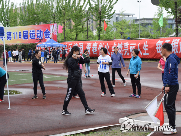与此同时,田赛场上,教工组足球射门决赛、员工组男女立定跳远决赛、员工组男子铅球以及教工组女子铅球也如火如荼地进行着。经过激烈的比拼,公司的赵文玉同学在女子跳远决赛中取得第五名的好成绩。在其他的项目中也可见我们土木人矫健的身影,他们一次次地挑战着极限,突破自我,即使摔倒在沙坑中,也绝不退缩。