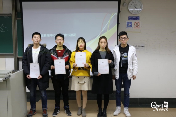 最后,新闻中心主席团给每位新闻中心成员发放聘书并合影留念。