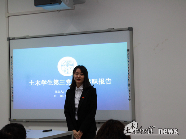 首先由茅以升土木党支部书记罗文森进行答辩。他重点介绍了他们党支部的交流谈心制度和“朋辈导师”计划等党支部特色。然后由土木第一到第八党支部各党支书进行述职答辩。期间,祁旺党支书重点介绍了他们党支部的民主评议党员制度,张靖党支书分享了主题为“认识”的交流分享经验特别活动,张钰莹党支书则强调了她们“成熟一个,发展一个”的发展党员原则,梁浩毅党支书则对其在党员品学方面提出硬性要求做出了强调。