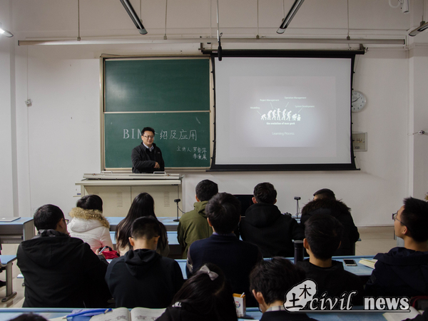 在90分钟的讲座里,罗紫萍教授和李秉展副教授就BIM的发展前景,BIM的应用,BIM和AR,VR等前沿科技的结合的应用等方面向同学们进行了介绍,让同学们对BIM有了一个较为全面的认识。