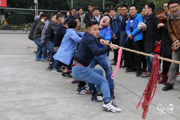 11月23日中午,2017级研究生拔河比赛决赛在九里校区篮球场展开,本次拔河比赛旨在促进班级间交流,提高同学们运动热情,增强班级凝聚力。经过昨日半决赛的激烈对抗,2017级专硕结构2班,专硕道铁2班,学硕道铁1班,专硕桥梁1班成功晋级四强,展开冠军亚军季军的角逐。