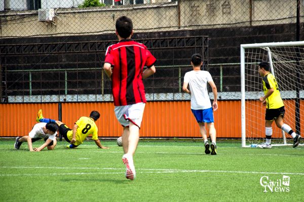 这场足球赛虽然以学长队的胜利结束,学长队经过一年多的磨合与配合,长期形成的默契是这些研一新生队员们之间所不足的。虽然比赛输了,但是各新生队员们将赢在未来。