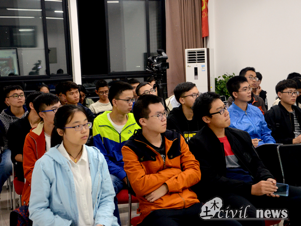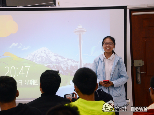 在此次活动中,陶柯免同学以目标为工作与考研为主线,通过公司竞赛、员工工作以及生活三个方面为新生做了报告。会议开始他便引用其助辅的一句话“大学里,学习不是唯一,但一定是第一”作为起始,紧接着便提出效率与自觉两个重要概念,然后围绕这两个重要概念,进一步叙说了去图书馆以及自习的重要性。陶柯免同学列举了几个重要学科,并以英语与土木工程制图两个学科为例子,介绍了自己的一些学习方法与经历。