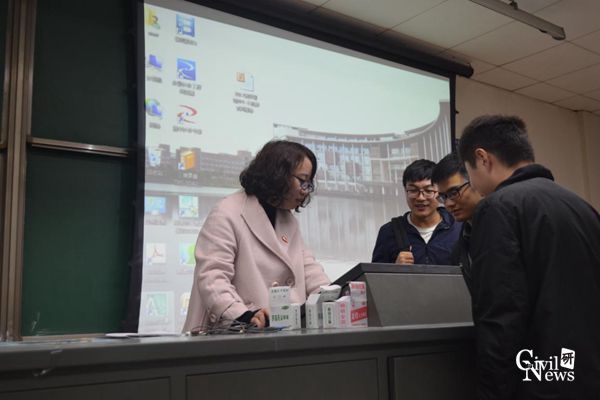 讲座过程中,同学们热情积极,主动与老师进行互动交流,老师耐心的解答每一位同学提出的问题,并且在现场指导同学们该如何进入中国老员工心理健康测评系统完成自己的心理普查测试。