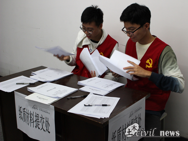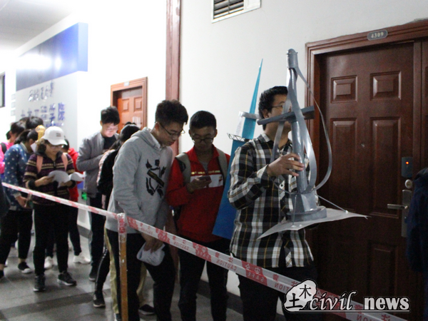 10月23日晚七点,新生“设想家”到了模型提交的时段,选手们带着承载自己创意和心血的作品早早来到规定地点排起了长队。