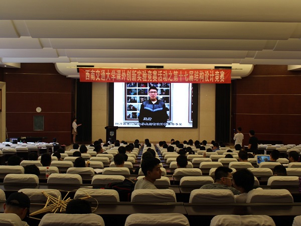 5月20日上午8点半,桥梁承重和桥梁造型比赛正式开始,栗怀广、张锐、邓开来等老师作为评委出席。