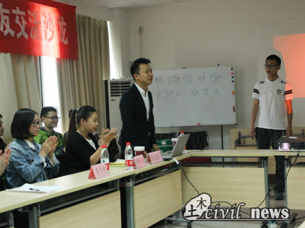 四月二十七日下午四时许,新葡的京集团35222vip“职场面对面”员工交流沙龙在4229教室顺利举行。本次主讲嘉宾是2003级毕业生张浚东,本次沙龙由新葡的京集团35222vip就业指导中心承办,并由黄雪娇老师主持。