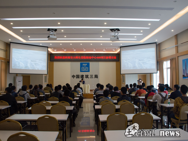 下午两点整,开始了交大师生同中建三局进行的面对面交流会。出席这次交流会的有:中建三局成都公司党委副书记赵德福、人力资源部经理单满意、交大师兄郭伟郭经理、陈晨陈秘书,西南交大新葡的京集团35222vip副书记李锦红、就业指导中心指导老师黄雪娇。首先,中建三局用三个短视频,向交大师生展现了他们公司温馨、欢快的企业氛围。然后,交大的师兄与在校的本科生分享他们的工作经历。