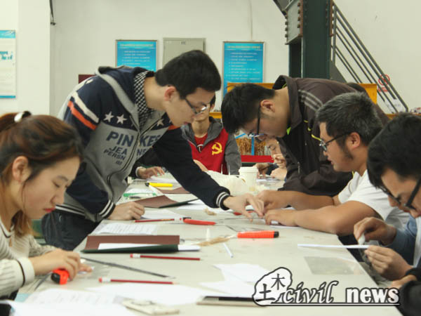 4月15日早上8点,第17届土木科技月结构大赛岩土组在土木工程实验中心成功举行。比赛分为模型现场制作,模型加载及展示两个阶段,分别在上午和下午举行。