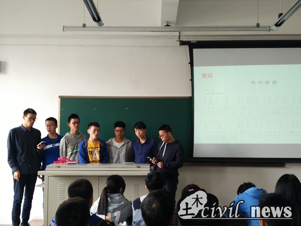 活动开始前,熊麟老师首先进行了简短的活动介绍,并宣布活动正式开始。全体成员分成五个小组,相继上台讲解自己小组提前准备的关于组内所选红歌相关介绍的PPT。每一个小组在讲完PPT后便开始了相应的红歌演唱。场下同学也不禁跟着节奏或唱歌或打拍,活跃的活动气氛弥漫在每一个角落。