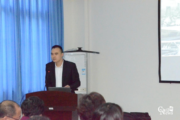 辛佐先经理首先对其母公司隧道股份进行了介绍,接着对集团下属的BIM中心进行了简介。他提出,BIM在行业发展的关键,为“平台开发+标准制定”,借助于云计算、互联网及大数据,BIM在未来一定大有可为。他对BIM的理解进行了详细介绍,对其来源即制造业中的电子样机技术进行了介绍,对其在波音飞机的设计应用中也做了较为详尽的讲述。他引入BIM成功应用的三个案例,分别为BIM在上海北横通道的应用、厦门轨道交通线网中的应用及城市信息化管理平台中的应用,从BIM的四大工程效果、BIM的应用模式及BIM协同管理平台等方面进行了详尽阐述。
