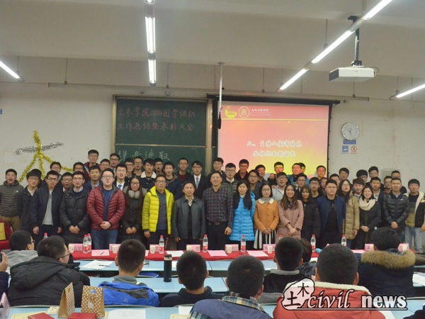 各大组织代表发言之后,由李锦红副书记做出总结。李书记先是感慨时光之飞逝,同学们眨眼间又经历了一年的工作和学习。这一年里,他总结自己的感受为四个词:辛苦、感动、感谢、展望。辛苦:每个组织都各有特点,都有着许许多多的工作和任务,在繁重的学业下抽出时间完成任务,每个组织成员们都非常辛苦,时常为了工作而熬夜。感动:很多活动由于资源有限,使得活动困难,但各组织干事的努力和认真感动了他,他也看到了同学们的优秀,为同学们感到骄傲。感谢:李锦红副书记向同学们表示了由衷的感谢,感谢同学们对于组织工作的付出,感谢指导老师的辛苦工作,他幽默风趣地指出,组织干事们把和女朋友看电影的时间用来做策划了,而且科创的同学更是冒着和女朋友分手的危险开展活动,此时台下响起了一阵欢快的笑声。展望:李书记说到,希望来年组织的活动可以更加细致。他提到,同学们当有所为,有所不为,希望同学们不要只在形式上搞活动,要以有利于土木学子学习和成长的方向开展活动。最后,李书记,预祝同学们期末取得一个好成绩。