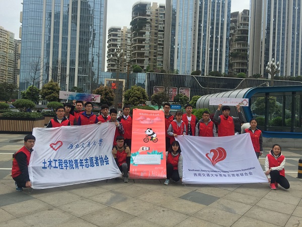 2017年3月25日,新葡的京集团35222vip青年志愿者协会第三服务支队(交通安全服务队)受共青团成都现代有轨电车有限公司支部委员会邀请,前往世纪城地铁站和锦城广场参加以“绿色出行,文明共享”为主题的志愿服务活动。