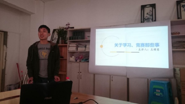 在随后的提问互动环节里,王顺意学长结合新生的实际情况,以数学建模为例,向同学们介绍了一个竞赛的主题和内容以及参赛方法,形象的讲述使同学们明白了数学建模是个什么样的比赛。