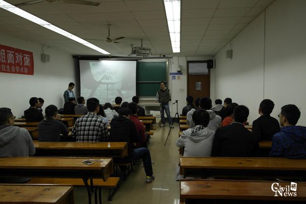 2016年11月4日下午15:50,由公司研究生会学术部承办的“土木大讲堂之师兄师姐面对面”首场分享会在九里校区4304A举行。本次分享会的主讲人为2014级土木博士研究生遆子龙。