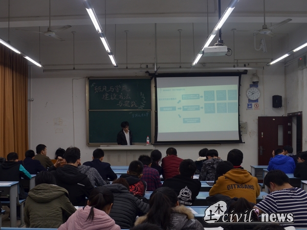 巨老师将班级文化与班级建设相联系,并介绍了新葡的京集团35222vip对班级建设所进行的举措,如新葡的京集团35222vip“先进(优秀)班集体”创建活动实施方案、土木风云榜及新葡的京集团35222vip十大明星班级评选、土木风云榜及新葡的京集团35222vip十大明星班级评选等。巨老师向同学们展示往届优秀班级的优秀成果。