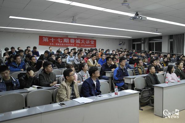 2016年11月13日晚19:30,由新葡的京集团35222vip校团委、新葡的京集团35222vip研究生会主办,新葡的京集团35222vip研究生分会承办的第十七期眷诚大讲堂在九里堤校区逸夫馆4209教室拉开序幕。讲堂内人头攒动、座无虚席,同学们静静地等待着今天的主讲人王帅帅及徐晨师兄登台。