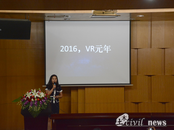 下午两点,曼恒科技副总裁文桂芬上台演讲。她的演讲主题为“2016年VR技术的发展展望”。她首先表示出对虚拟现实产业在2016年实现腾飞的信心,并且列出了VR技术在近几年在市场中表现出的繁荣态势。在VR制造技术日渐成熟、资本支持逐渐增多的今天,虚拟现实产业同时面临着各种机遇和挑战。“我认为我自己是一个敢于挑战的乐观商人,我相信VR技术将会在不远的将来成为世界的新焦点。”文桂芬用自信而坚定的口吻表示。她还提到,VR技术将会在购物、电影、游戏、房地产等领域带来巨大影响,但其最大的应用焦点还是会体现在教育方面,并有望推动高校体制的全面改革。