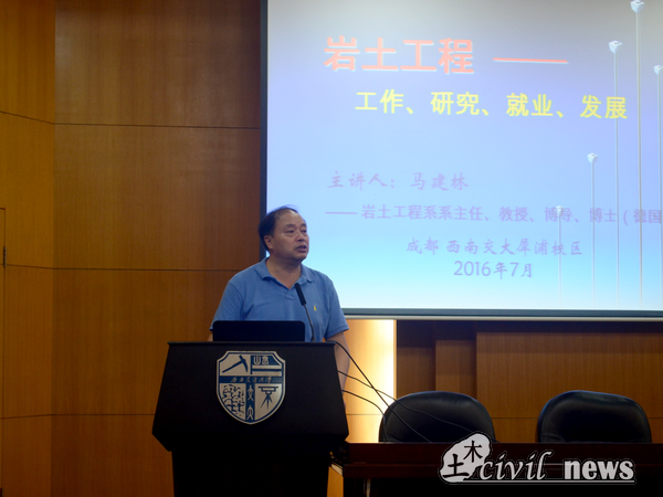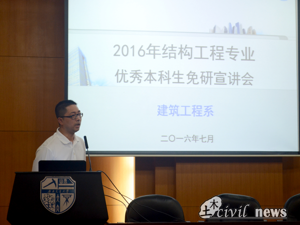 接下来,周晓军教授则以一种详尽严密的学科态度为大家带来地下系的解读。周教授的PPT主要从团队力量、专业课的设置、招生情况和保研工作条件等方面运用大量的数据以及实例进行分析。出现在屏幕上的数据宛如跳动的音符,让大家对于地下系有了更加深刻的理解。随后上台的铁道系和岩土系的老师也为各位在座的同学带来了本专业的详尽解读。结构工程的潘毅教授则通过一段十分钟简单而充实的介绍让大家对结构工程拥有了自己的理解,潘教授同时还对员工应选择有名还是有声的导师表达了自己的观点。