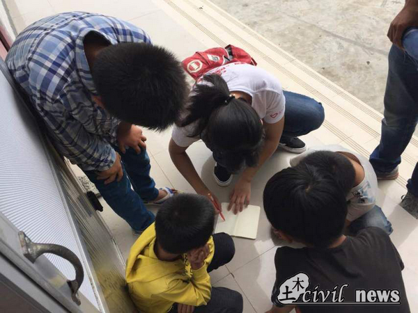 虽然大部分的孩子们都很开朗活泼,能很快和志愿者们打成一片,但是还是有个别孩子很腼腆。为了不让一个孩子掉队,其中几名志愿者专门抽出时间和孩子们谈心,带他们做手工,最终使得每一个孩子都参与进来,并有所收获。