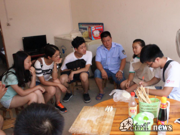 在交流中第二分队的成员们与孩子们更多地交流兴趣、梦想与怎样跨过困难。到吴开勇小朋友家里时,志愿者们得知他喜欢游泳,就鼓励他把这个兴趣保持下去。然后志愿者们就针对地质灾害(特别是这里常见的滑坡问题)与孩子进行交流,分享他们今年在地质课程学到知识,教孩子怎样辨别将要发生滑坡以及发生时该怎样避难。