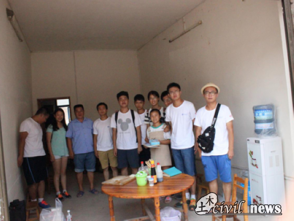 在访问这些户人家的任务完成后,志愿者们与村支书合影。今天的任务基本完成。