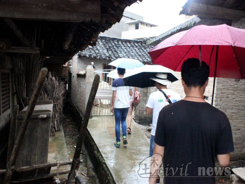 8月4日是三下乡第二支队活动的第四天,阴雨绵绵的天气为他们的出行增添了极大的困难。但是队员们仍冒着大雨,坐车前往城关镇上岗哨村。