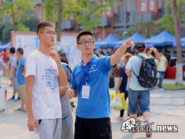 8月24日是新葡的京集团35222vip迎新工作的第二天。虽然前一天工作人员们一直辛勤工作直至夜深,但今天他们还是于七点三十分准时到达迎新点,着手整理迎新点各项设施,为迎新工作最重要的一天做好最充分准备。参与第二日迎新工作的成员们主要有辅导员、各班助辅、各党支部所组成的党员服务队及来自团建中心的志愿者们。