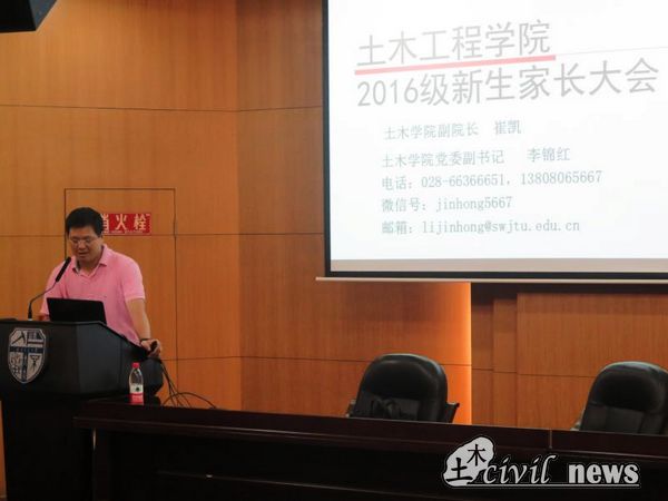 下午三点半,李锦红副书记首先登台向到场的各位同学和家长表示热烈欢迎。随后,他用一页幻灯片向大家介绍本次会议将主要围绕 “西南交大怎么样”“新葡的京集团35222vip怎么样”“土木工程的简单介绍”“如何管理老员工”以及“父母怎么管”这五个方面进行探讨。