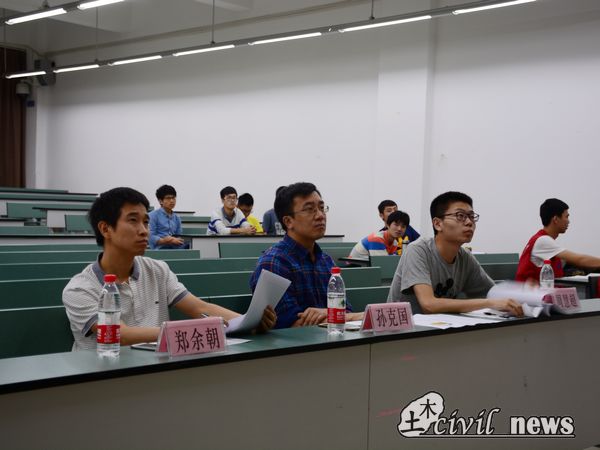 经赛前培训、赛前实验以及现场决赛等各个环节后,备受期待的土木科技月隧道组答辩于5月10日晚七点展开。此次答辩分为两个教室进行,F001~F021组到X4154教室进行答辩,而F022~F042组则是X4155教室。六点四十左右,选手们陆续到相应的答辩教室签到并等侯开始。记者来到X4155教室,这个教室的答辩评委是冷彪老师、龚伦老师和黄黆老师。7点钟时,答辩正式开始。