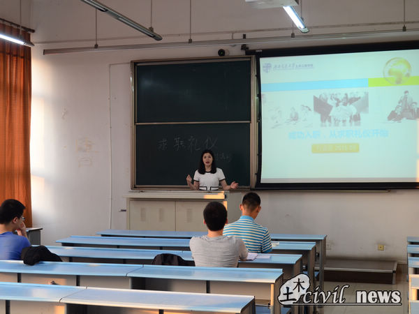 5月10日,新葡的京集团35222vip付真珍老师在X2427教室为即将毕业的土木专业的学子进行求职礼仪的讲述。提到应聘,在很多同学的眼里,更多的注重的是专业知识的考究,各种综合能力的展现等。其实,在此之中,求职礼仪也发挥着不可替代的作用。