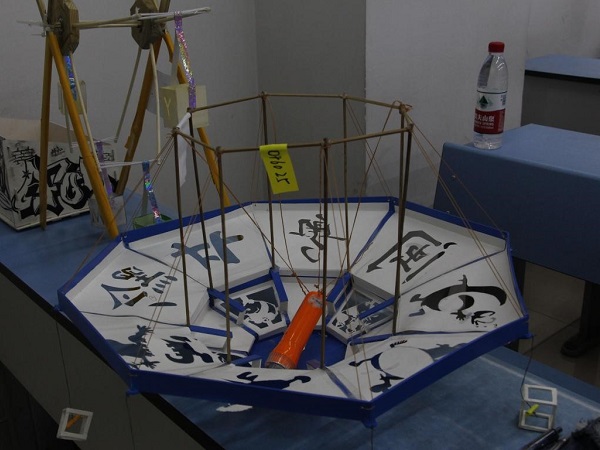 随着时间的推移,比赛接近尾声。T046025寝室的作品“八挂灯”最令人印象深刻。“八卦”,是中华传统哲学中一个深邃又神秘的名词,而T046025寝室的同学们用他们的兄弟之情重新诠释了“八挂”。他们的作品做工精致、实用而美观,在黑暗下的效果更是惊艳全场。最终,“八挂灯”获得了全场最高平均分94分,夺得了比赛一等奖。