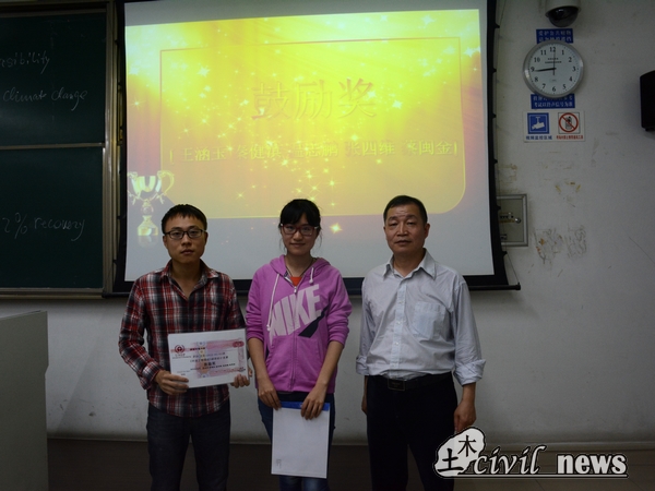 5月13日,2012级茅以升公司土木1、2班关于《环境工程基础》课程设计竞赛的颁奖典礼在X2427隆重举行。参加本次颁奖典礼的嘉宾有工学博士、博士生导师杨顺生教授,本科办创新办公室主任梁老师以及资助本次竞赛的企业代表吴高工。同时,跟随杨老师而来的两位德国职工也参加了此次颁奖典礼。