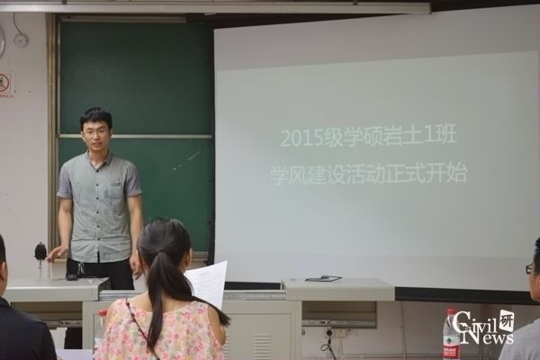 5月20日晚,15级学硕岩土一班在逸夫馆4305B举办了一次学术研讨会,内容涵盖岩土工程一些重要问题,本次活动分为4组,主要以学术汇报的形式进行。举办本次活动的目的是提高大家的创新意识和专业素养。