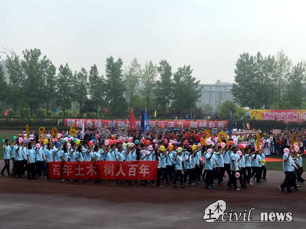 开幕式表演结束后,迎来了各公司与组织的入场式方阵。从数学公司开始每个公司的队伍都迈着整齐的步伐缓缓而进抑或是在主席台前停下,表演一段精心准备的节目。由钱永久书记、李锦红、李彤梅副书记带队的新葡的京集团35222vip方阵在第十五位出场。作为和交大拥有相同的120年办学历程的新葡的京集团35222vip今天以“跨越”为主题,为我们展示了一百二十年来公司从筚路蓝缕到桃李芬芳的跨越性办学历程。方阵中展示了今年三月份土木学子参加的美国ASEC钢桥比赛时用81公斤成功承载1吨荷载的钢桥。“百年土木,树人交大”的旗帜激励着在场的每位新葡的京集团35222vip的学子,而他们则喊出了“巍巍交大,竢实扬华,百年土木,中流砥柱”的口号响彻操场。随后的电气公司,机械公司等方阵依次走过,而最后一个离退休教职工代表队则迎来了学子们充满敬意与祝福的掌声。
